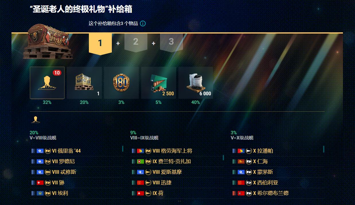 值得一提的是,本年圣诞活动还新增了“圣诞老东说念主的终极礼物”补给箱,这箱子仅限军械库金币购买,池子执行和其他圣诞箱换取,但高等船和出奇船的爆率更高,何况掉落其他奖励的数目也更多!条目允许的一又友可以开开看。